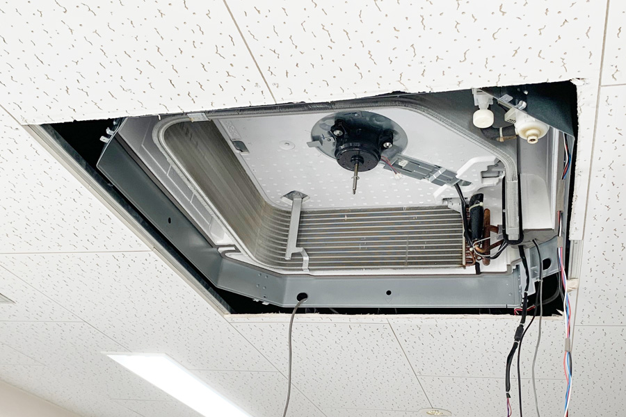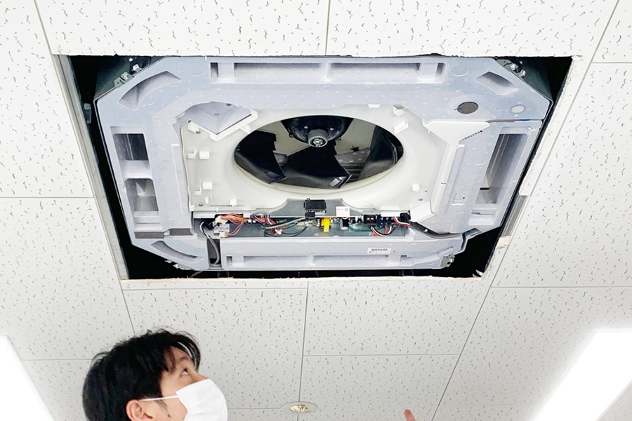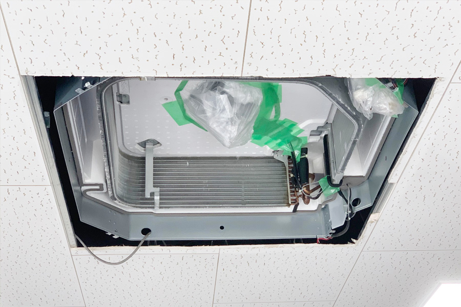 オフィスのエアコン内部を分解洗浄でカビやホコリを除去